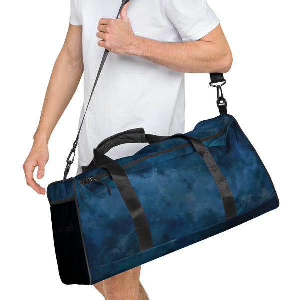 Our ˈjenəsisApparel Blue Sky' "Duffle"Travel Bag is the perfect companion for every occasion—take it with you when traveling, running daily errands, or going to the gym. The bag is spacious and will keep all your stuff neat and organized with its multiple pockets, including one with a zipper for your most valuable possessions. Adjust the padded shoulder strap when the bag’s helping you carry heavier things, and continue your daily run without a worry!
