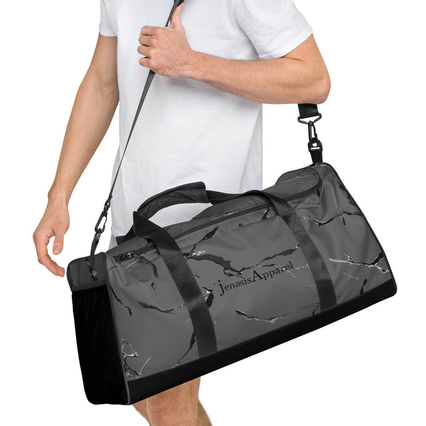 Our Cracked Gray' "Duffle" Travel Bag is the perfect companion for every occasion—take it with you when traveling, running daily errands, or going to the gym. The bag is spacious and will keep all your stuff neat and organized with its multiple pockets, including one with a zipper for your most valuable possessions. Adjust the padded shoulder strap when the bag’s helping you carry heavier things, and continue your daily run without a worry!